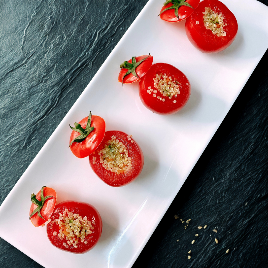 Main Ingredients : Heirloom Cherry Tomatoes , Quinoa , Bell Pepper, Red onion, Lemon Olive Oil