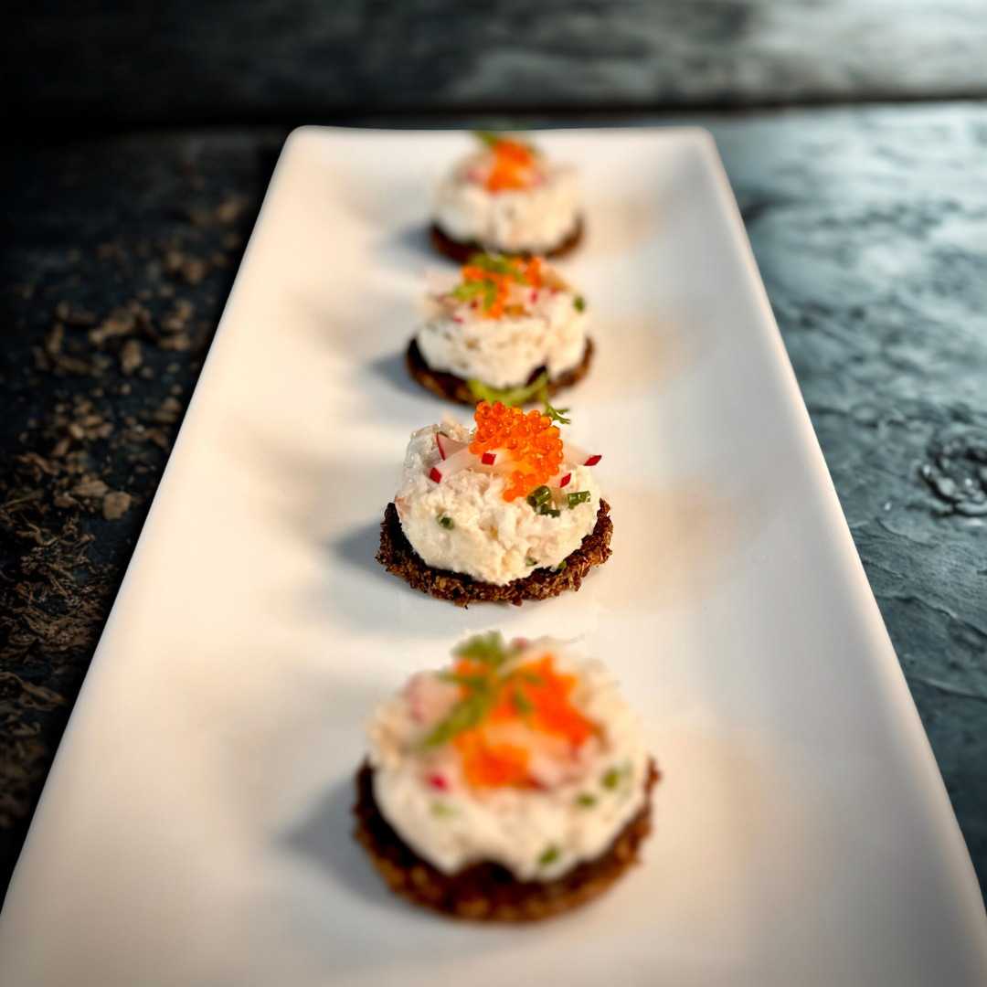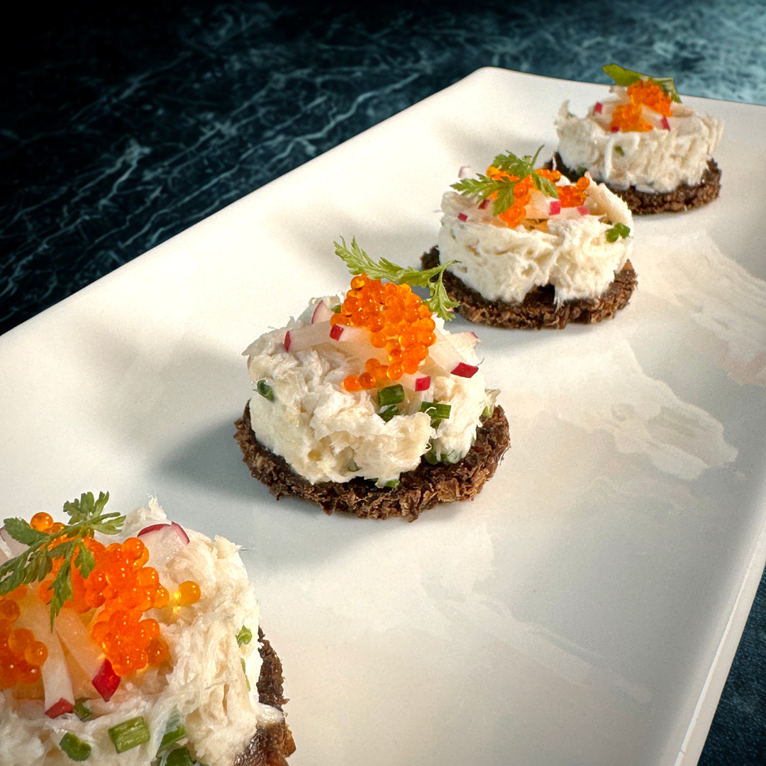Apple & Crab Salad with Tobiko on Pumpernickel