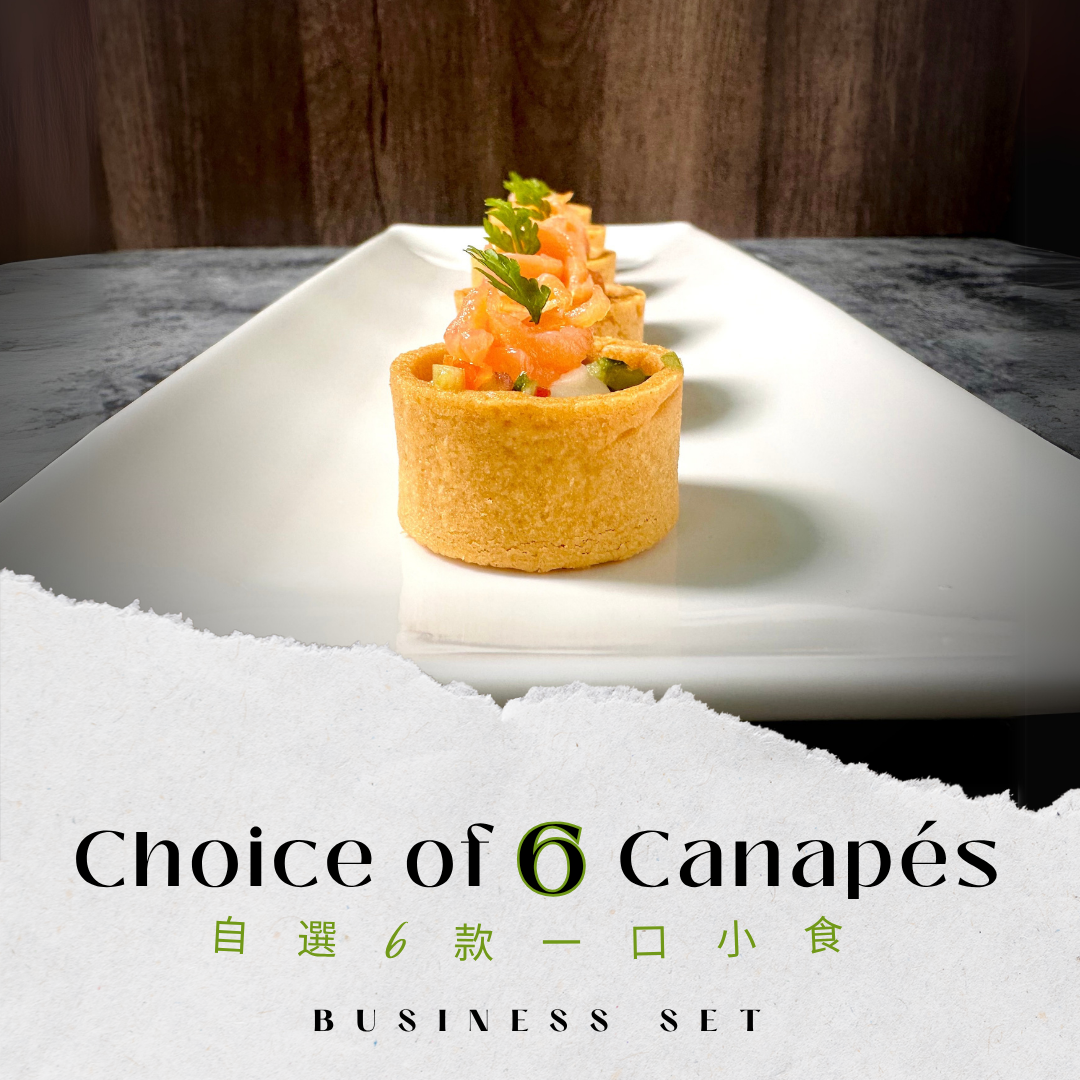 Each guest may select six canapés from our curated menu—easy to mix and match to suit diverse tastes.