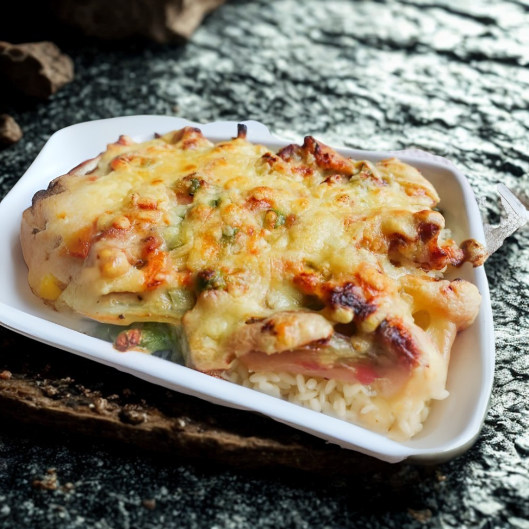 Main Ingredients: Chicken, Bell Pepper, Potato, Cream Sauce and Rice