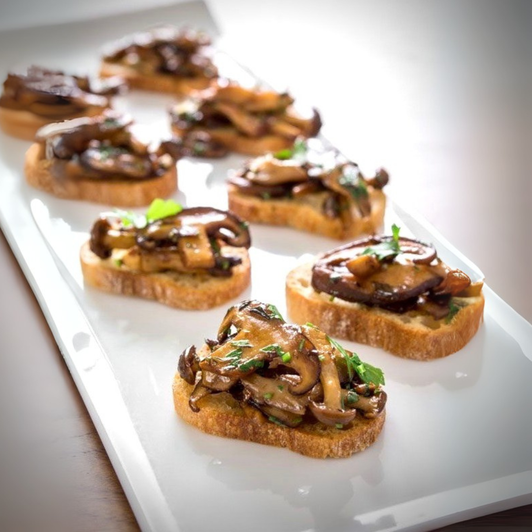 香氣撲鼻的義式烤麵包,上面鋪滿白蘑菇和姬菇,並以百里香、大蒜和少許黑松露精心調味。經200°C高溫烘烤,濃鬱的蘑菇香氣更加濃鬱,帶來溫暖可口的口感,令人難以抗拒。