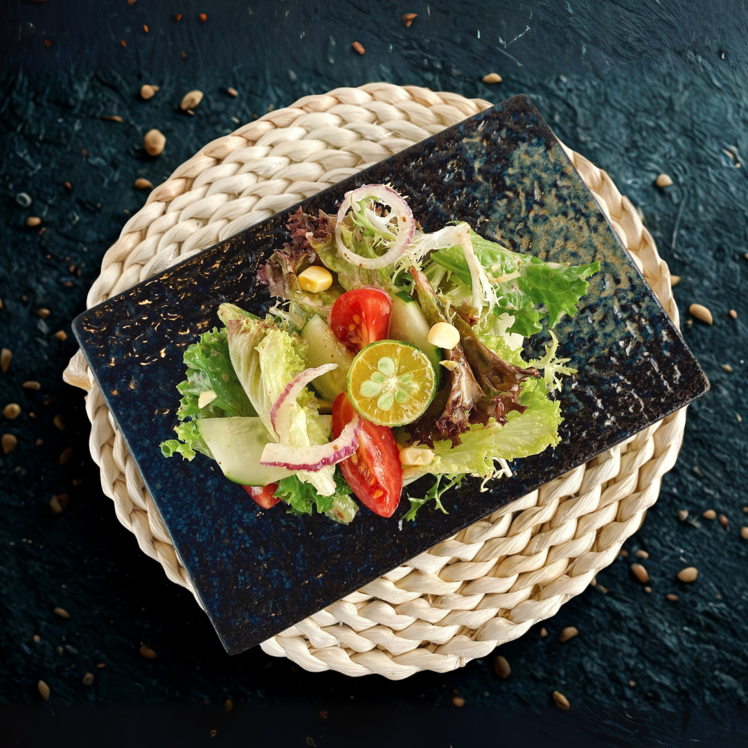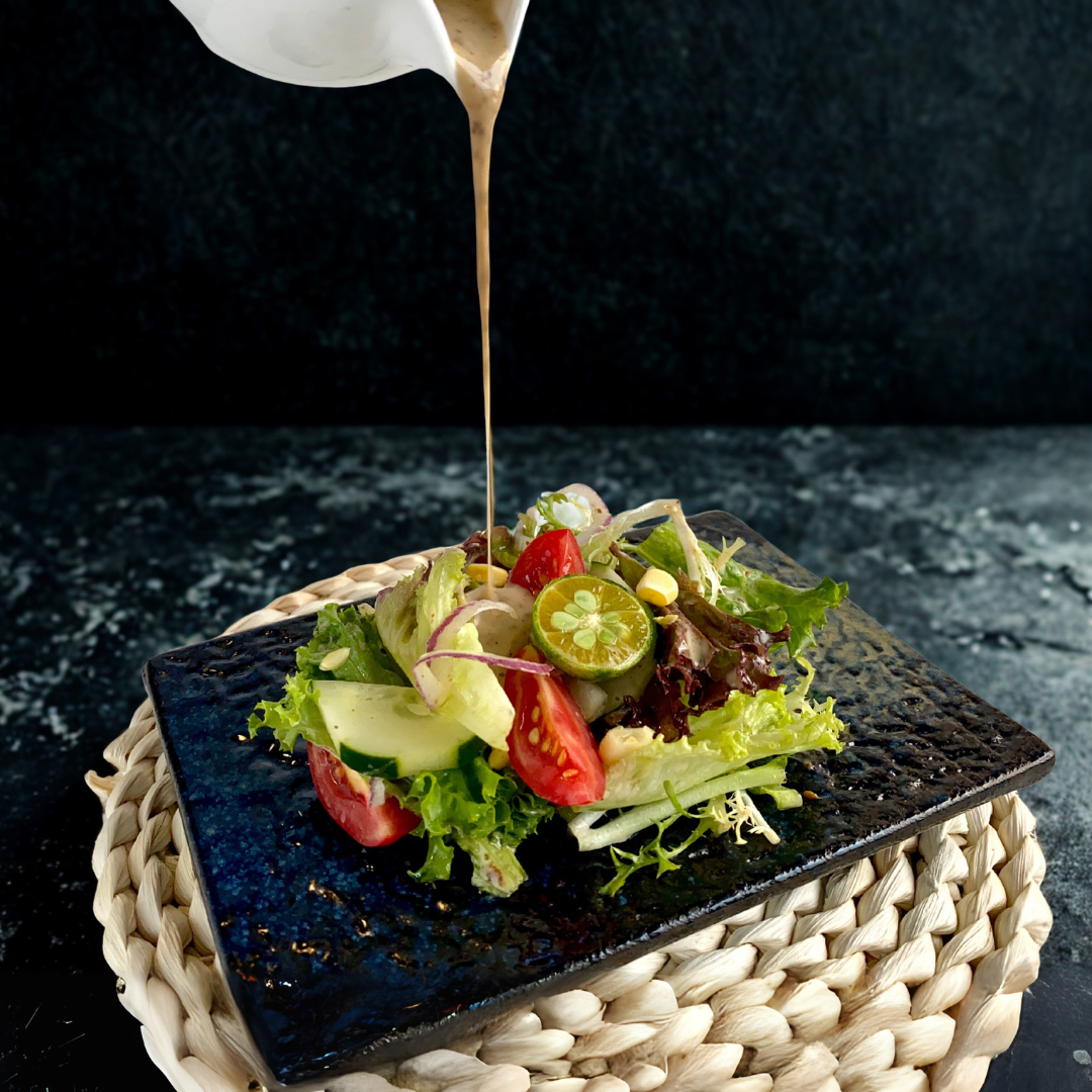 主要成分:芝麻菜、 車厘茄、紅洋蔥、番茄及日式沙律醬。