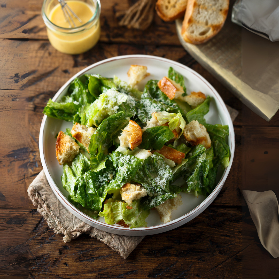 主要成分:羅馬生菜、麵包粒、 煙肉、 巴馬臣芝士、凱薩沙律醬