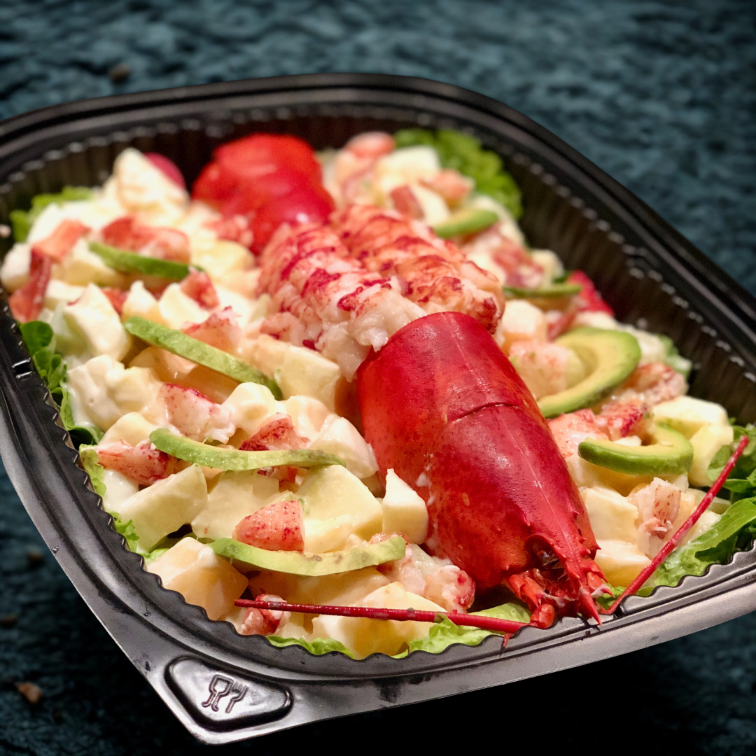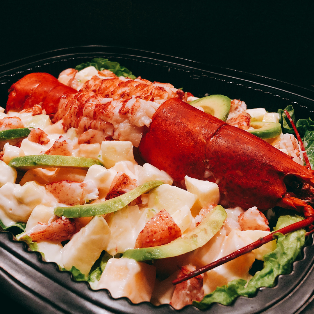 主要食材:一整隻新鮮波士頓龍蝦、 時令水果、蛋黃醬。