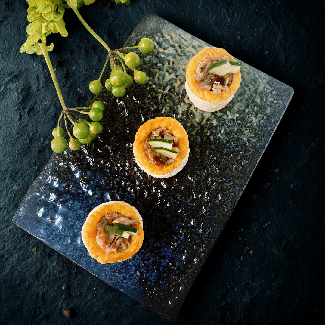 鮮嫩鴨肉搭配清爽黃瓜、香蔥和紅洋蔥。每張酥脆的面皮都餡料豐富,淋上濃鬱的海鮮醬,鹹甜適中。
