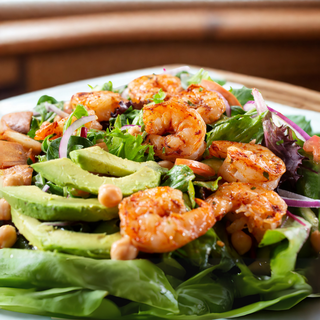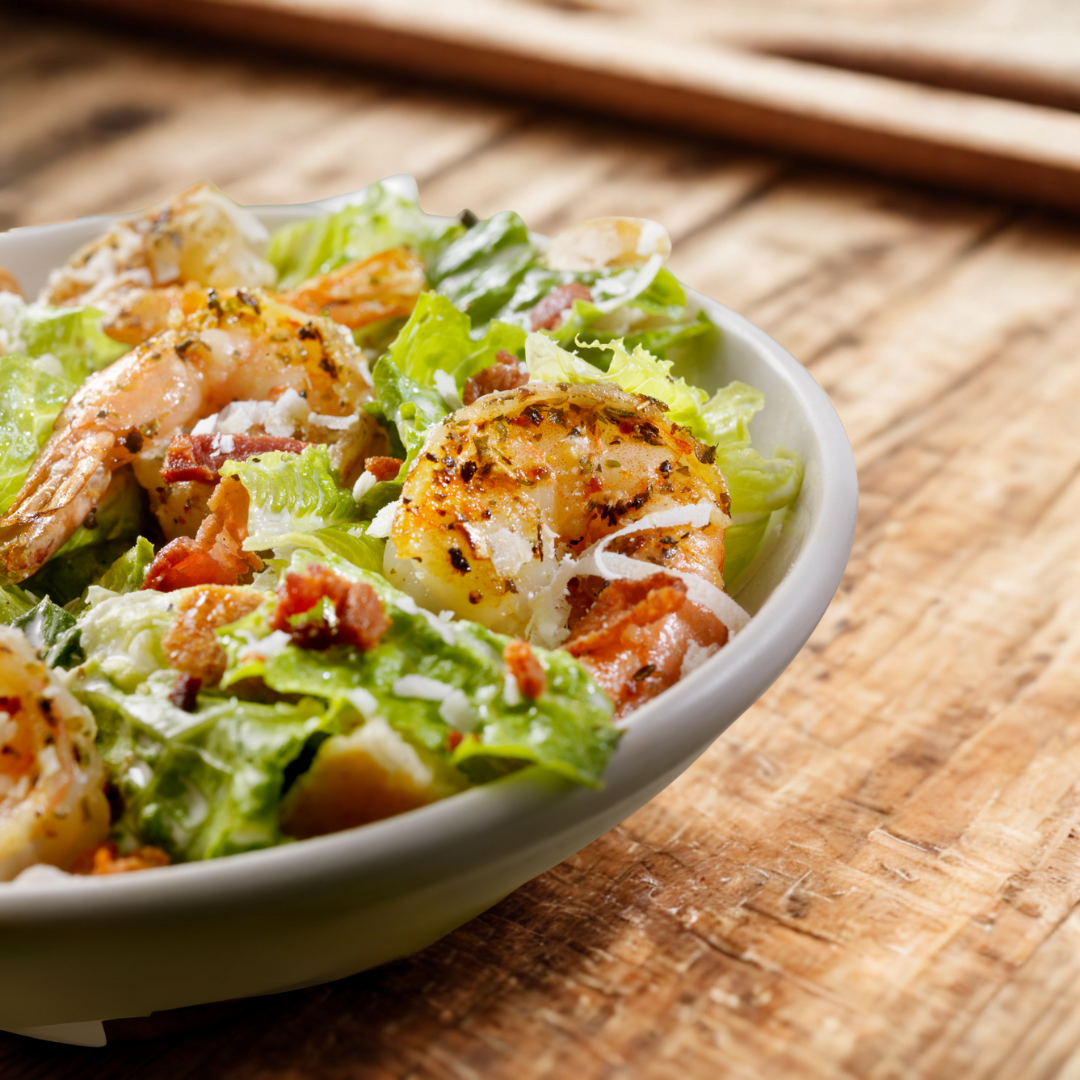 主要成分:海蝦、 牛油果、羅馬生菜、麵包粒、 煙肉、 巴馬臣芝士、凱薩沙律醬