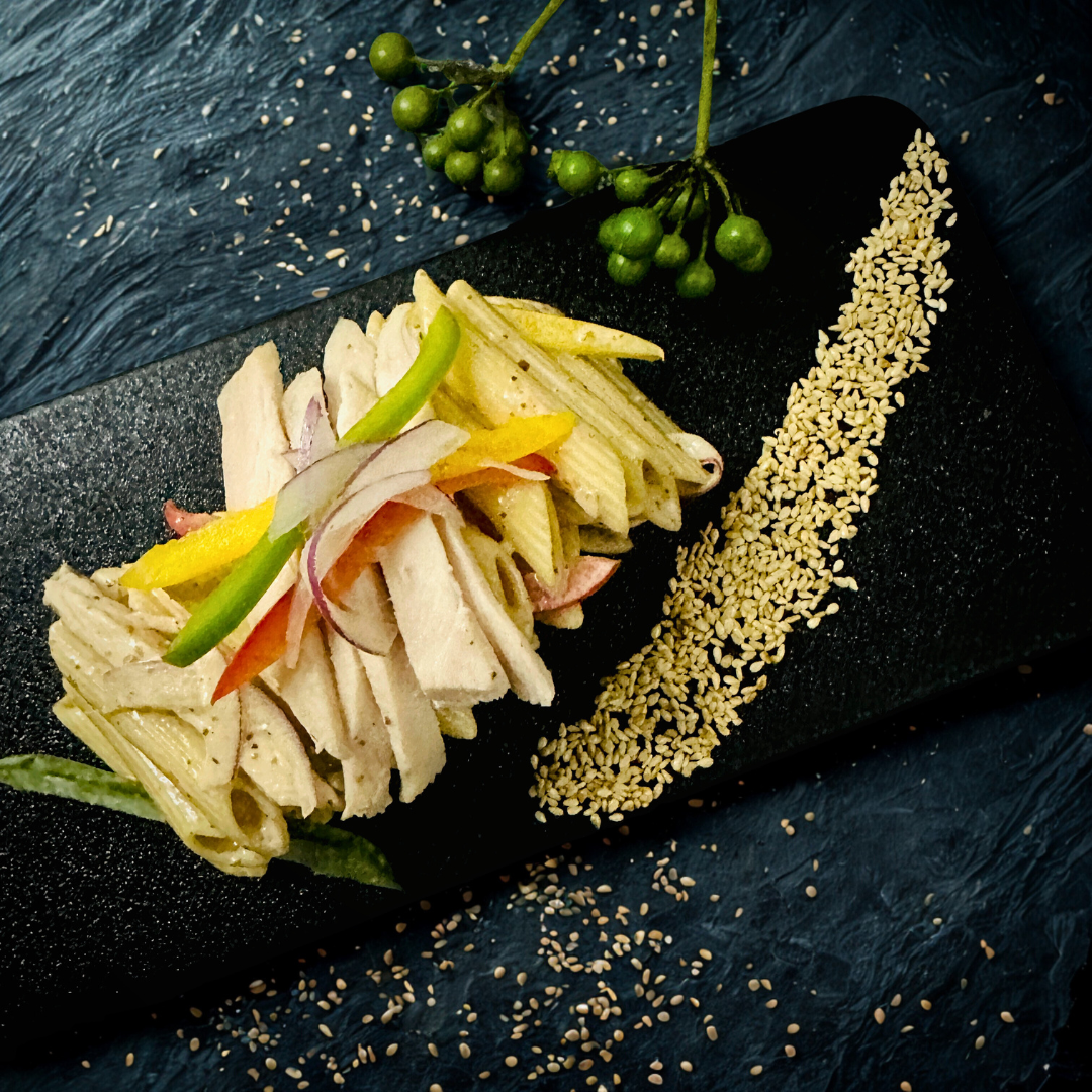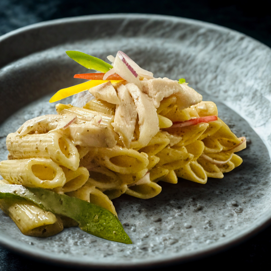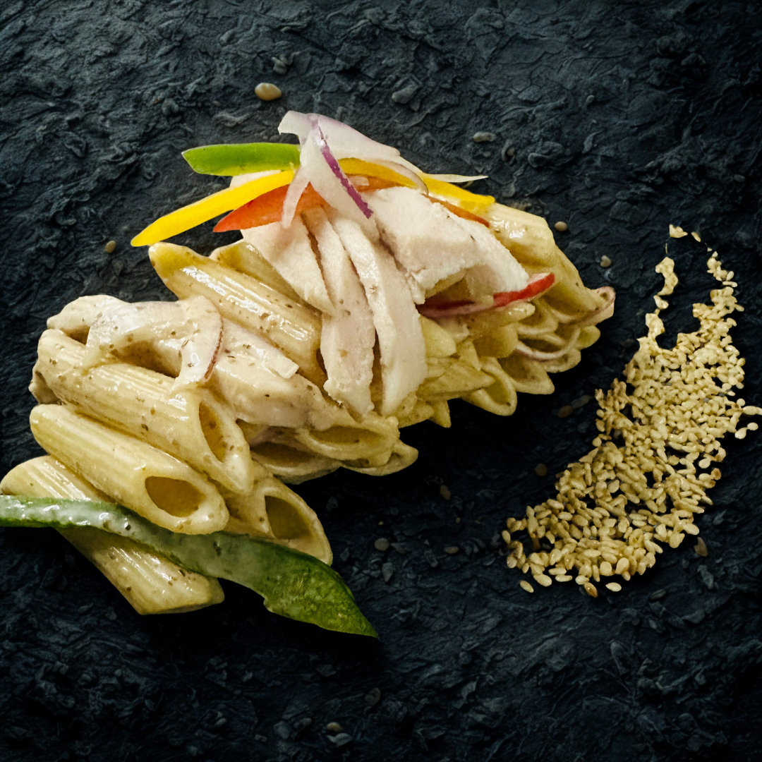 主要成分:低溫烹調雞胸肉、甜椒、紅洋蔥、長通粉和橄欖油